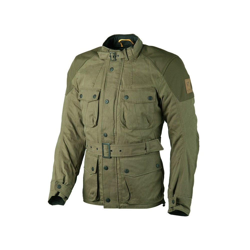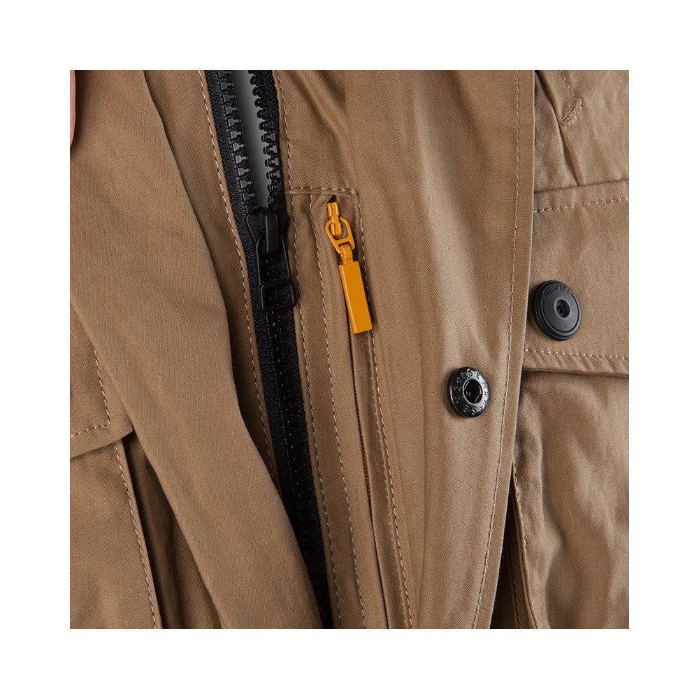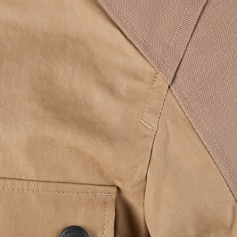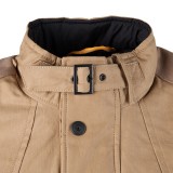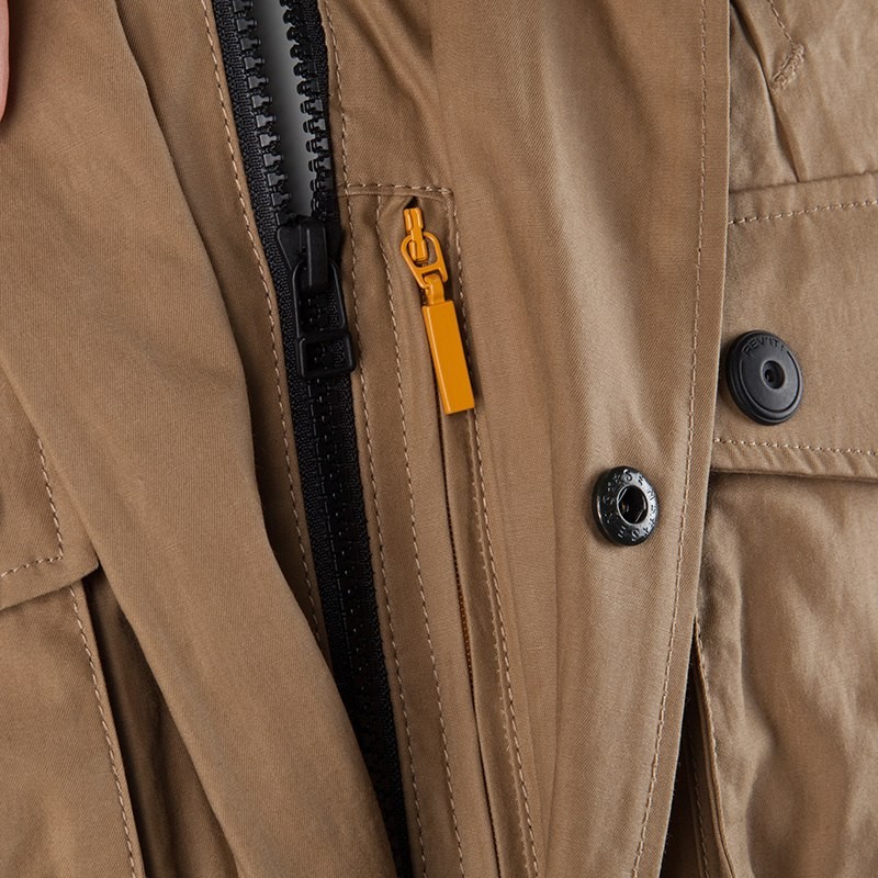 En sergé de coton ciré qui est un type de tissage moderne en diagonale qui apporte une grande élégance visuelle, un très bon confort et une grande imperméabilité