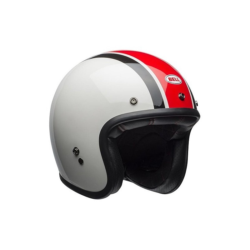 En premier lieu, la coque en fibres de verre, qui, alliée à un calotin en EPS multi densités, assure une bonne absorption des chocs, en plus d'abaisser le poids du casque. Mais pour réduire au maximum le volume de l'ensemble, elle se décline en 5 tailles différentes afin de correspondre au mieux à chaque morphologie. Sachant que le Custom est disponible du XS au XXL, cela lui permet de limiter l'effet « champignon » que l'on peut avoir lorsque l'on porte ce type de casque et assurer un look rétro incontestable.