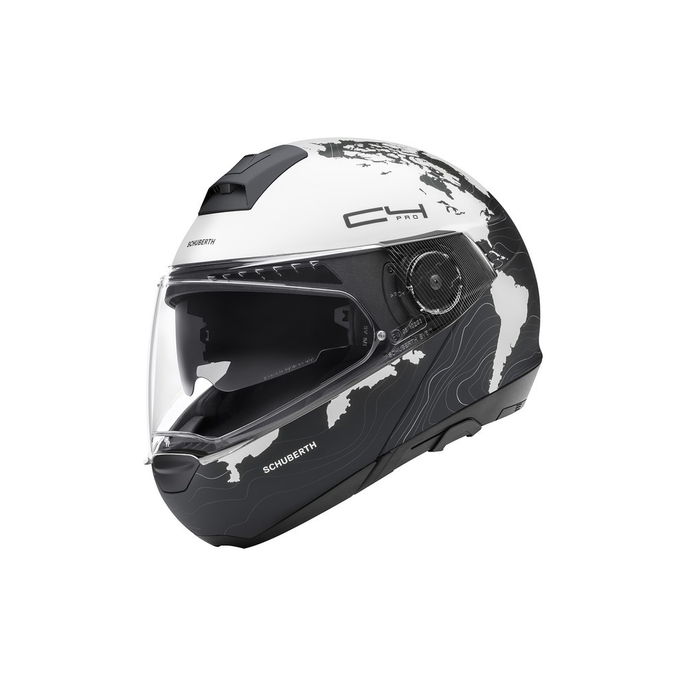 Concernant la visière, la marque allemande a de nouveau travaillé ce modèle pour offrir un champ de vision le plus large possible avec une visière transparente. C'est agréable, important et sécurise la vision périphérique de la route. Une série de Pinlock est proposée avec le modèle C4Pro. Le C4 Basic et Pro sont équipés d'un écran pare-soleil amovible, anti buée et anti-rayures. Ces options sont ajustables grâce à une manette (sur la base du casque, à gauche). Un régulateur de hauteur de visière est disponible. Pour se conformer aux normes européennes, le casque C4Pro comprend un écran solaire incolore déjà installé et escamotable, ainsi qu'un ensemble de réfléchissants à coller, une mesure obligatoire si vous roulez en France. Le C4 Basic et Pro sont compatibles avec l'intercom SC1 Standard et SC1 Advanced. Ils sont pré-équipés Bluetooth.